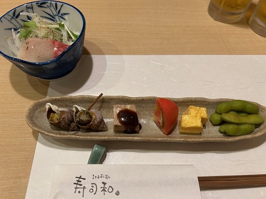 先付と前菜三点盛り