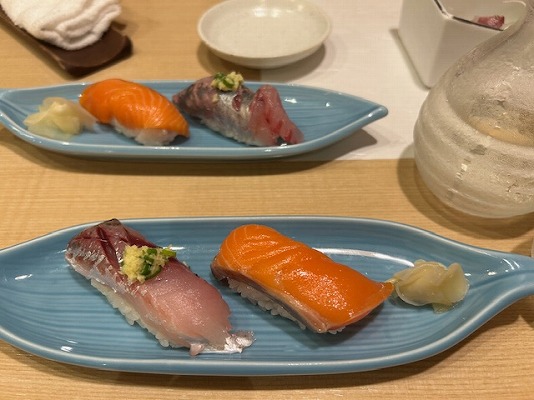 メニューに書いてないお凌ぎ(鰺・サーモンの寿司)
