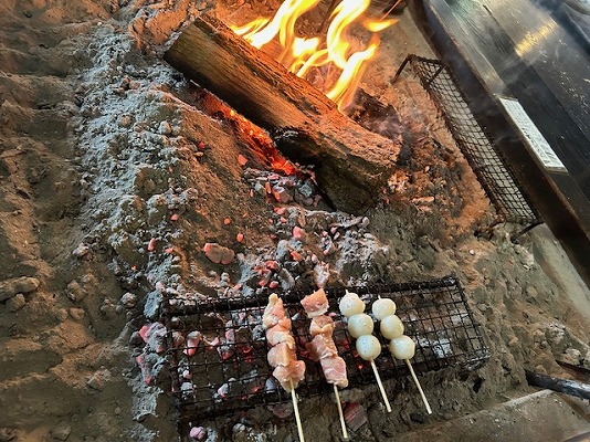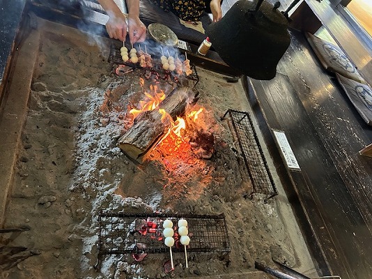 ここでは、囲炉裏でお団子・焼き鳥・味噌田楽を自分で焼いて、食べることが出来ます。
