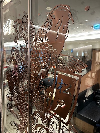 このガラスに貼ってある鯉がカッティングシートではなく、金属でできてて凄い!