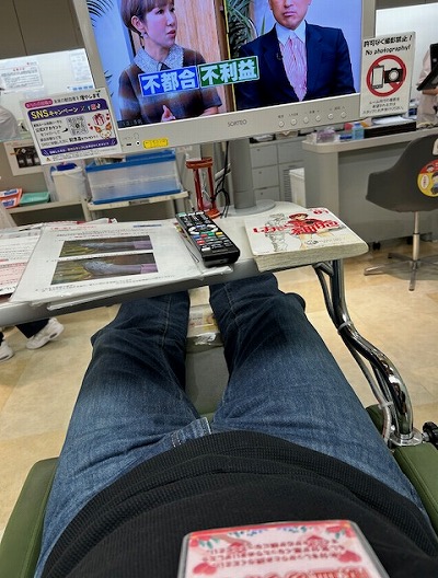 こんな感じで、テレビを見ながらリラックスした状態で採血されます。