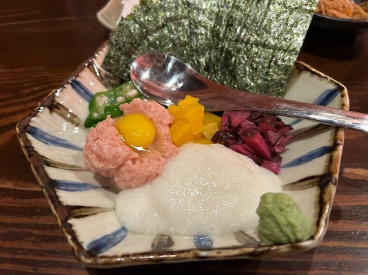 海苔を避けてごちゃ混ぜにして、海苔の上にのせて食べるとうまい!