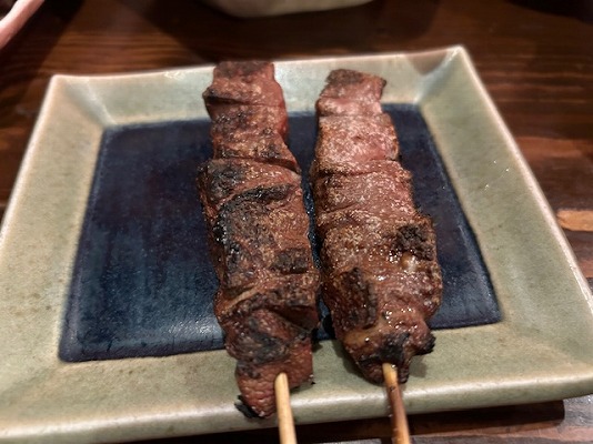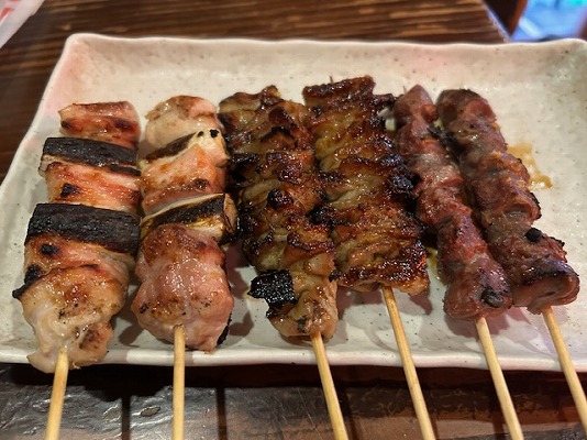左からねぎまの塩・鶏皮はタレ・砂肝の塩焼き