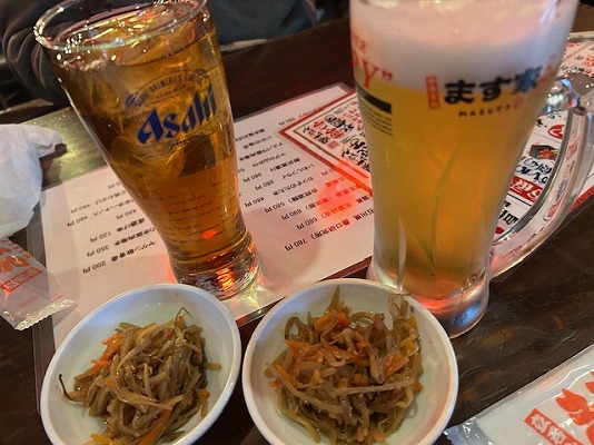 お通しは高いし、中ジョッキが小さい。