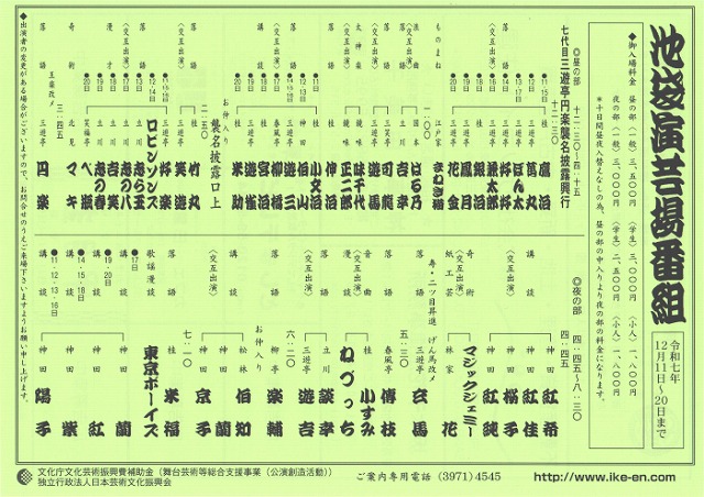 「池袋演芸場」の演目をリサーチしてみると。。。