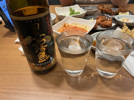 飲み物は、ビールに替わって黒霧のボトルをオーダー