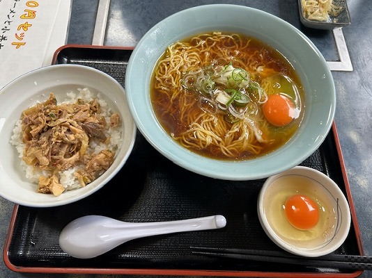 具無しの親鶏しょうゆラーメンに、生たまごを入れ放題のようです。