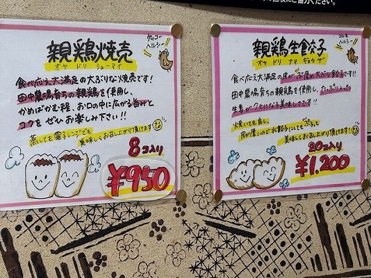 親鳥を使ったシュウマイと餃子がお土産であるらしい。