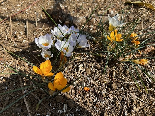 今日の暖かさで、満開に近い我が家のクロッカスでもご覧ください。