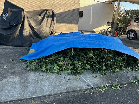 昨日の、刈り取った枝葉に本日分も足されると、この量