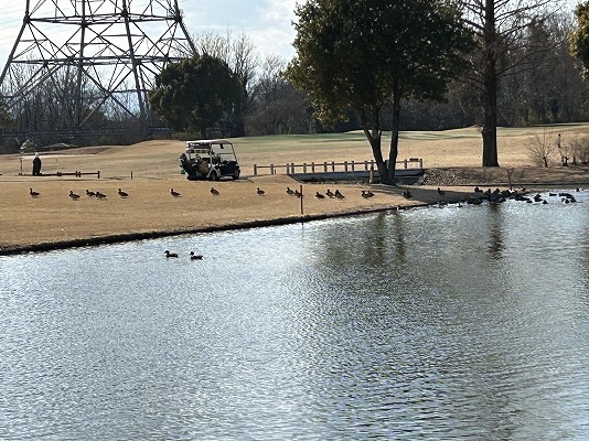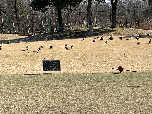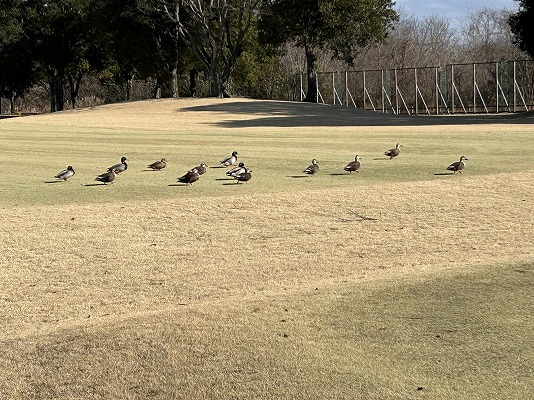 フェアウェイやレディースティーの上に、鴨の大群が居ました。
