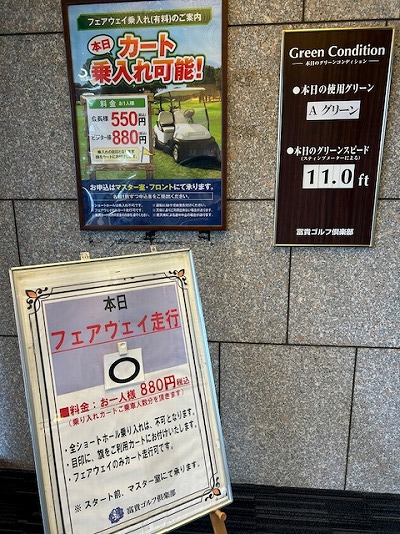 吉見ゴルフ場や大麻生ゴルフ場だと、時期によりフェアウェイへの乗り入れがタダで良くなるのに、ココはお金を取ります。