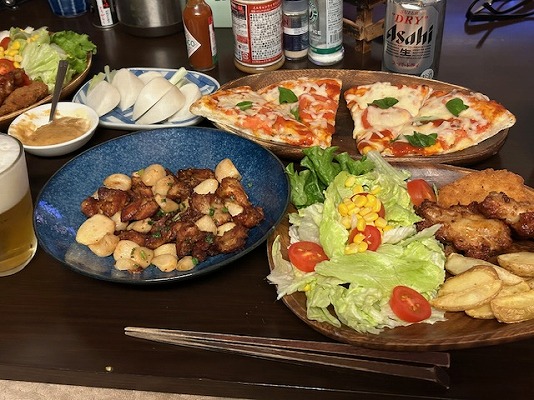 買った総菜は、PIZZABOXとスタミナニンニクチキンだけだけど、結構ボリューミーなつまみになりました。