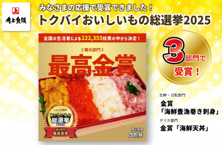 おいしいもの総選挙で最高金賞の四色丼を買うためにね!