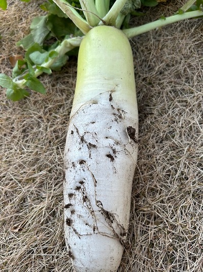 種蒔きが遅かったので、細い大根ばっかりなのですが、食べられないことも無さそう。