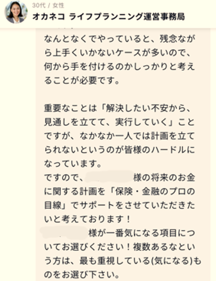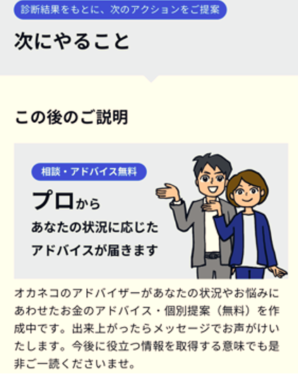 なんと! 早速オカネコのアドバイザーが個別提案を作成中だとさ!