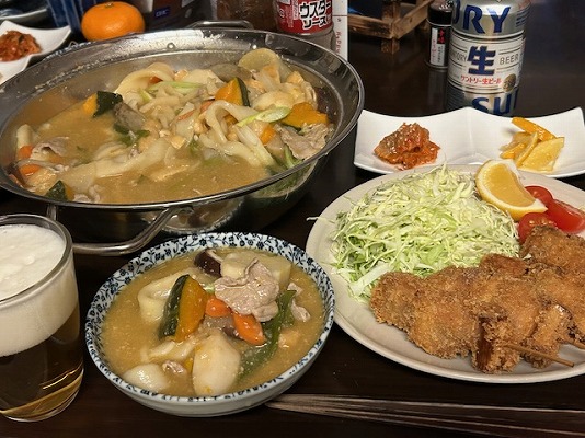 メニューはビールの横から、ほうとう・串カツ・ユズのはちみつ漬け・キムチ