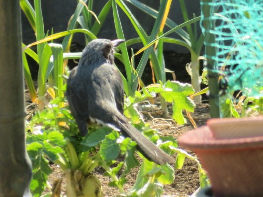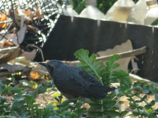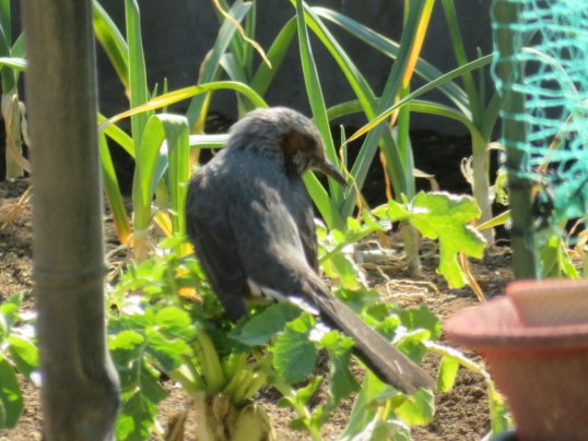 我が家の家庭菜園は、無農薬なのでまだ食べきれない大根の葉を、コイツが食べに来てました。
