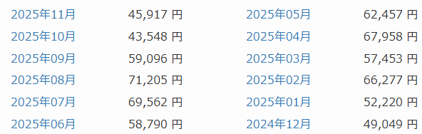 過去からの売電実績は、金額だけです。
