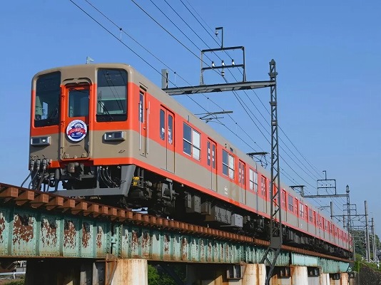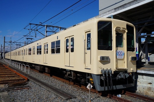 白地にブルーラインの8000型という車両が大半を占めてるのですが、他にも1963(昭和38)年にデビューした当時のカラーリングのものも走ってます。