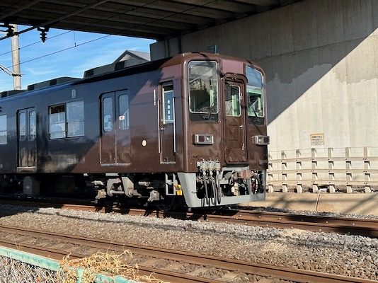 阪急電車は、「阪急マルーン」と呼ばれるもう少し明るい色なのですが、コイツは戦前の電車によく使われてた「ぶどう色1号」という色だそうです。