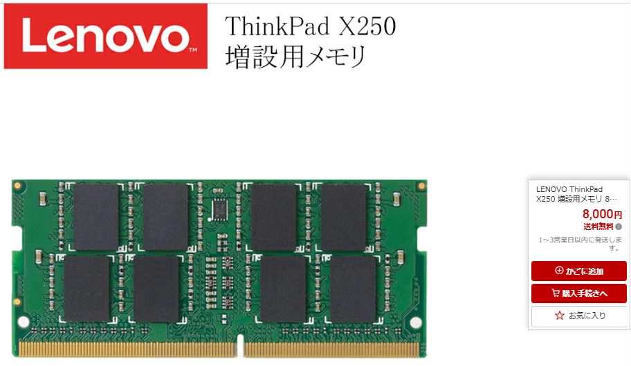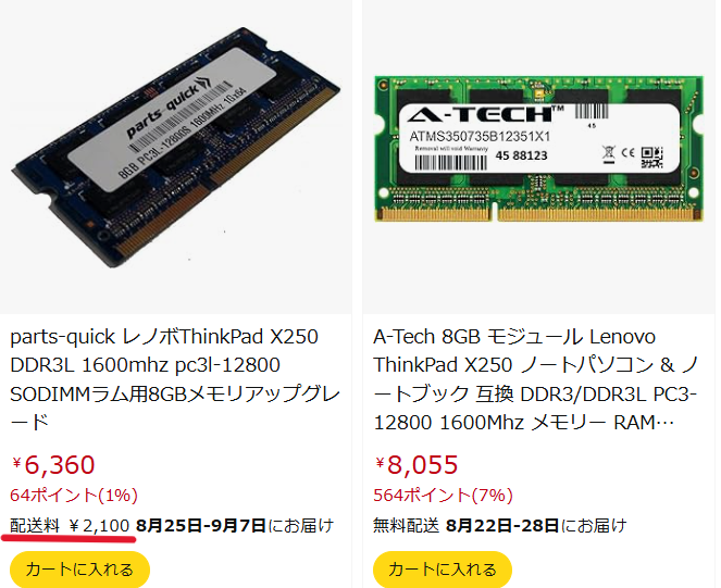 って事で、シンクパッドX250のメモリーをアマゾンなどで金額リサーチしてみると。。。