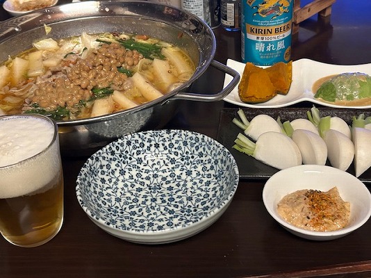 鍋は、YouTubeリュウジのバズレシピでやってたお餅が入った鍋に、納豆を入れてみました。