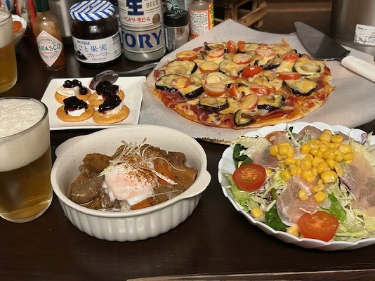 ピザは、普段ナスガーリックなのですが、今回はミックスピザ。