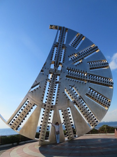海底トンネルを掘ったシールドマシンのカッターフェイスが記念碑として置いてありました。