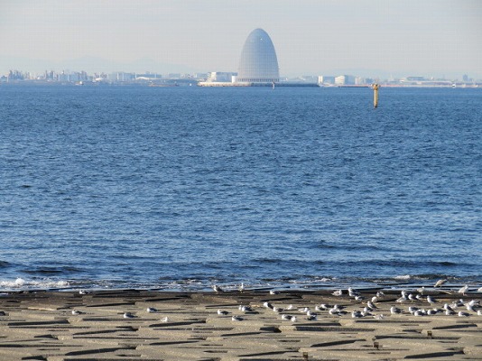 カモメだかユリカモメだか分かりませんが、たくさんの鳥と風の塔