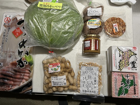千葉の納豆2種類と千葉半立ピーナッツに生のおおまさり