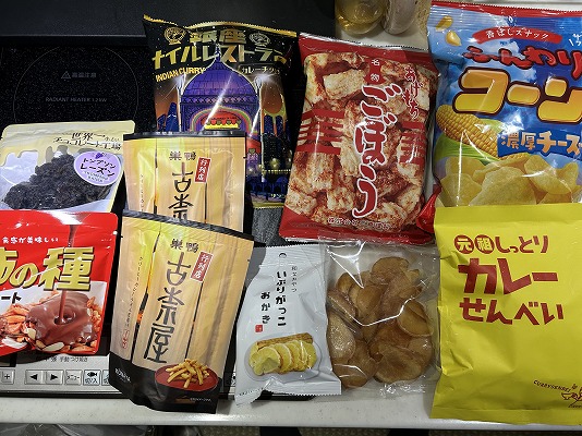 あられちゃん家で購入したスナック菓子やせんべい