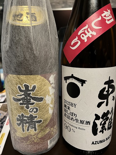 今回は、妻がお寿司屋さんで美味しいと思った「峯の精」と私が美味いと思った「東灘」を買いに来ました。