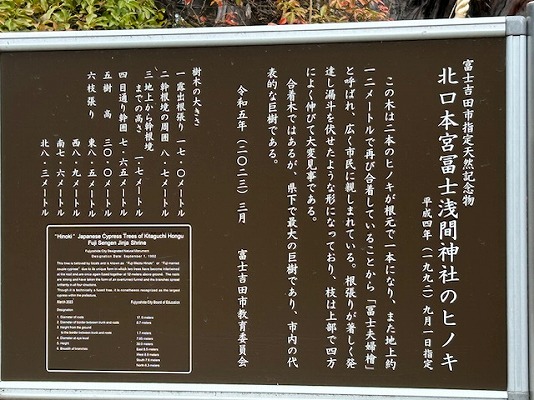 「富士夫婦檜」二本のヒノキが根元と地上約12mのところで合着してる。