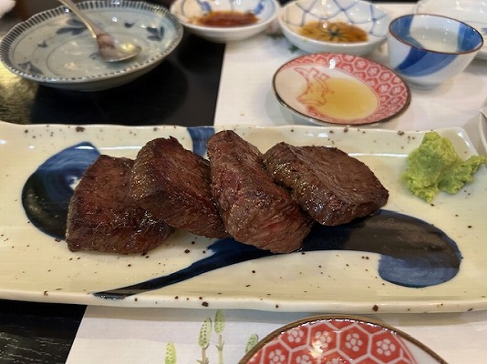 結構脂がのってる赤身肉なので、わさびをたっぷり乗せた方が旨い!