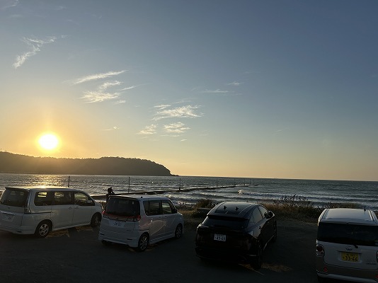 あぁ~ 日の入りは水平線上ではなく、岬の上でした。