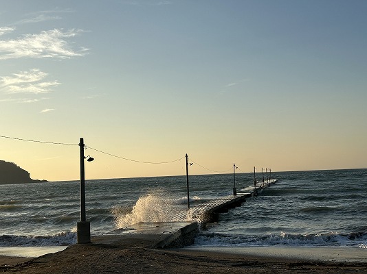 この後、富士山が見えないか? 沖をよく見てみたら薄っすらと山頂だけ見ることが出来ました。