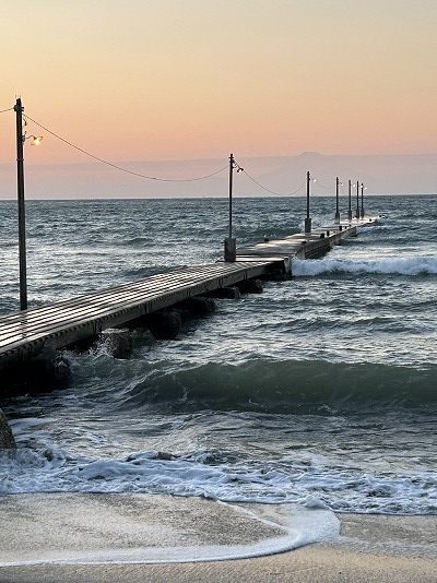 途中で気が変わり、岡本桟橋で日の入りが見られるんじゃないかと思い、ルート変更しました。
