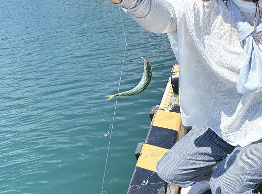 妻には、サビキをやらせて小魚が集まったところで、私は餌釣り