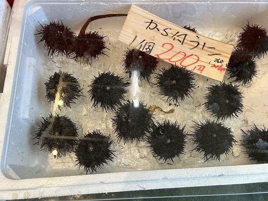 とりあえず、「さんさん商店街」で買ったのは、うにとタコとサバをゲットしました。