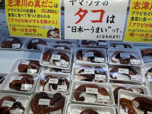 ここらへんで獲れる真だこは、志津川たこと呼ばれ、アワビなどの貝を食べてるので美味いとのこと。